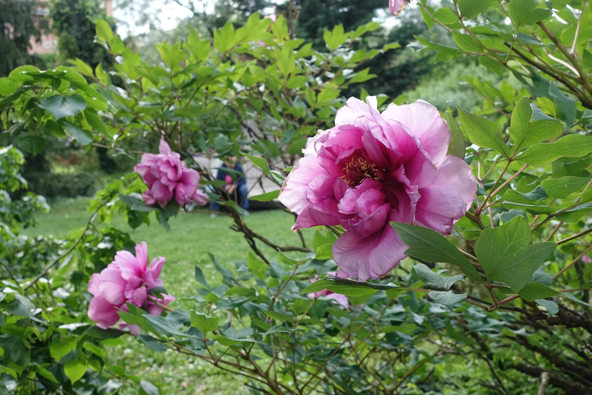 The interesting action happening in the garden occurs in April, May and June here. Conditions are comparable to June, July and August in the UK, with weather conditions something like the British summer. Minus the incessant rain- but still damp enough to keep everything green and lush. Massive tree paeonies bring colour to botanical gardens as early as April. Purple irises raise their nautical like flags everywhere. Unexpected delights like acacia blossom will make otherwise grimy streets, smell sweet later in the spring. June is often the wettest month and if the temperature has risen high into the twenties, the window boxes and balcony plants are well watered without human intervention and petunias and geraniums bloom like mad. Blue strings of lobelia can cope with these almost tropical days but will become frazzled later in the summer unless hidden in the semi-shade.