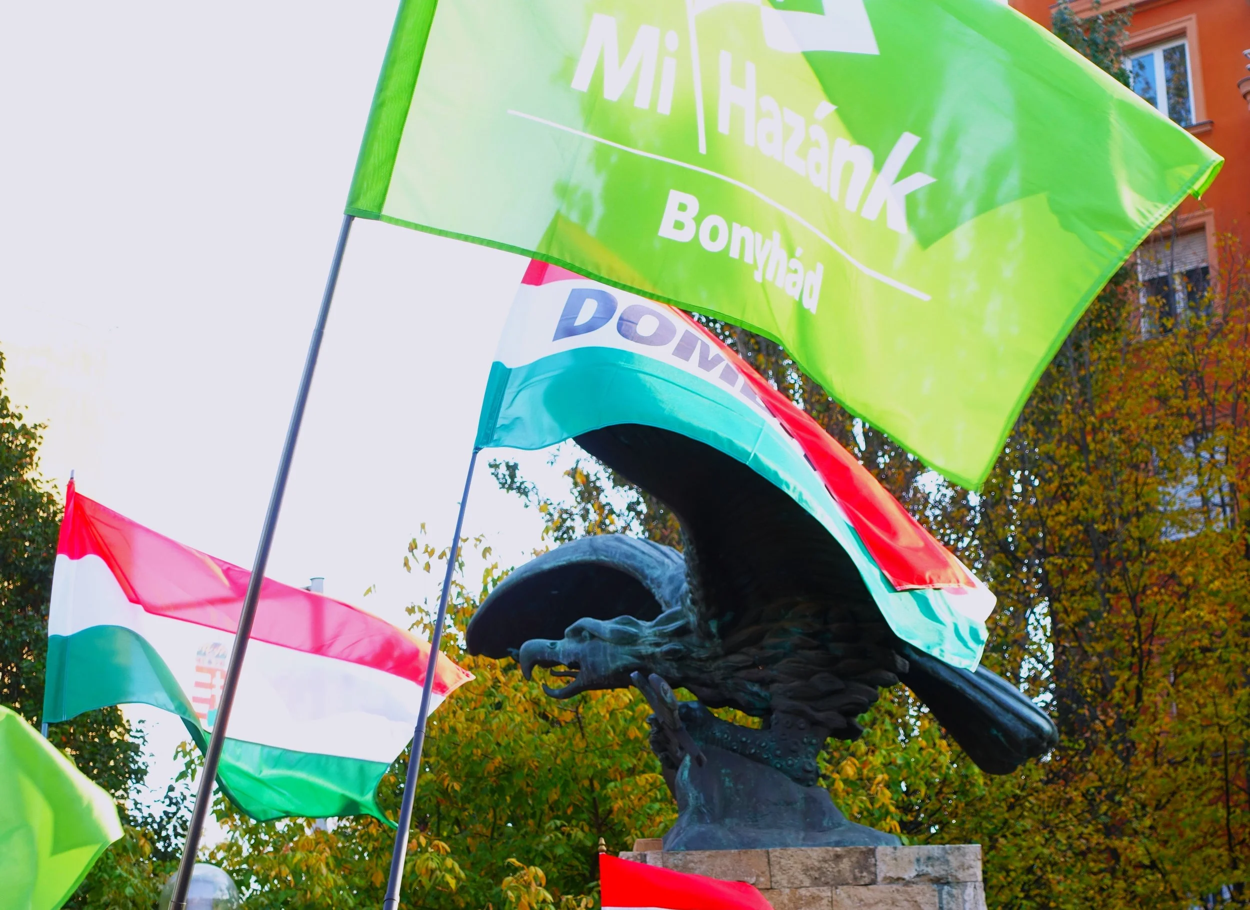 Mi Hazánk rally with Turul statue