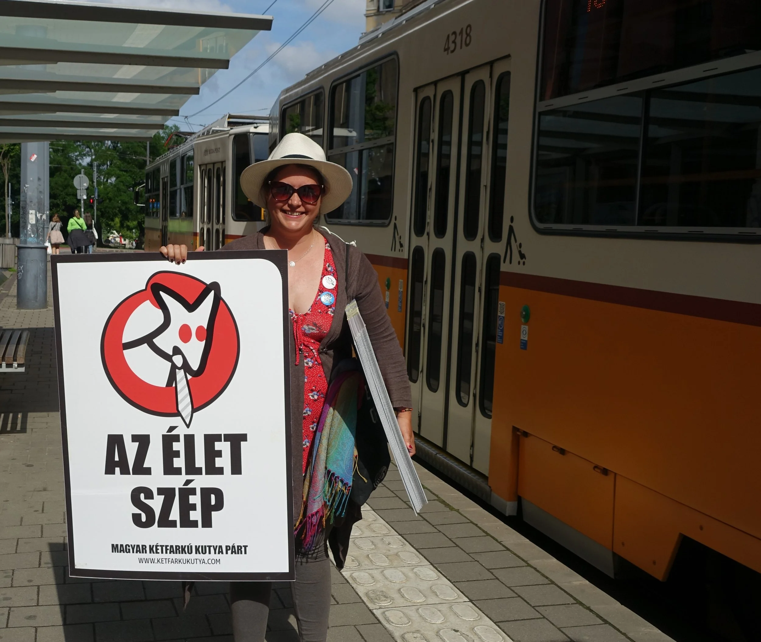 Second Budapest district candidate Veronika Juhász on her way to campaigning, offering voters ‘The beautiful Life’.